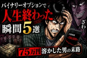 ハイリターンを求めた1回の取引が「バイナリーオプションで人生終わった」と、悔やんでも悔やみきれない後悔を引き起こすのだ。