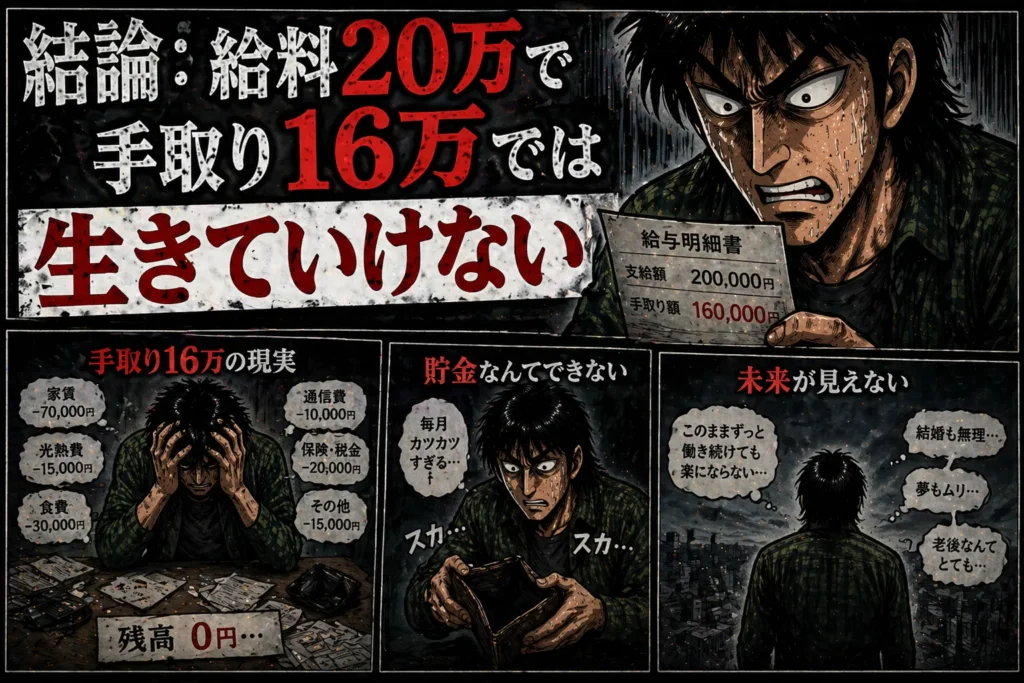 手取り16万円の男は生きていけない?給料20万のリアルな生活費と末路を実体験で解説